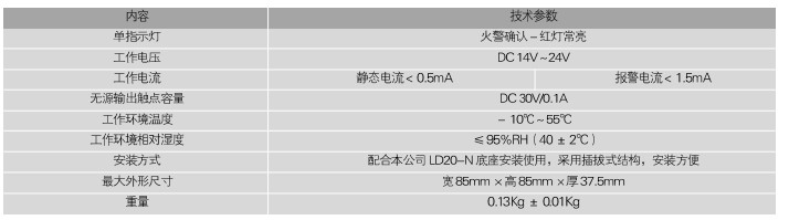 三、利達J-SA P-M-LD2000E-A手動火災報警按鈕主要技術指標