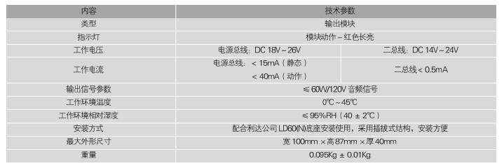 三、利達LD6804EN輸出模塊主要技術(shù)指標